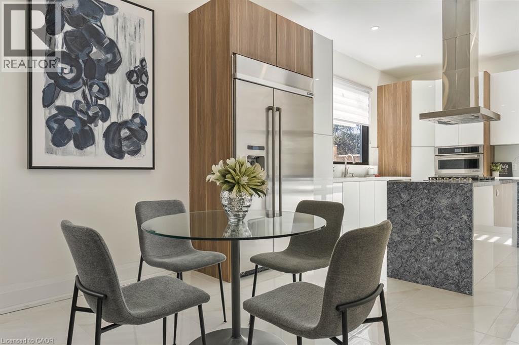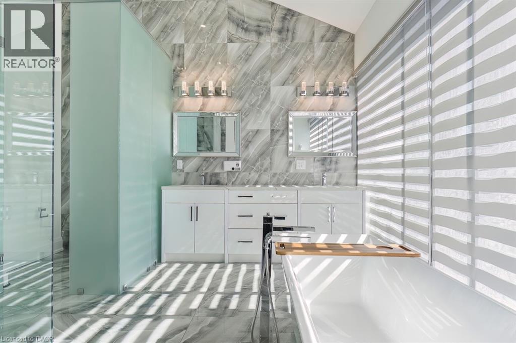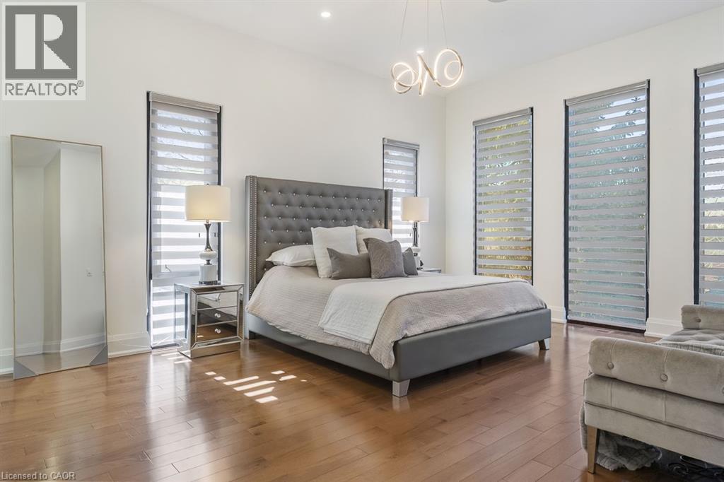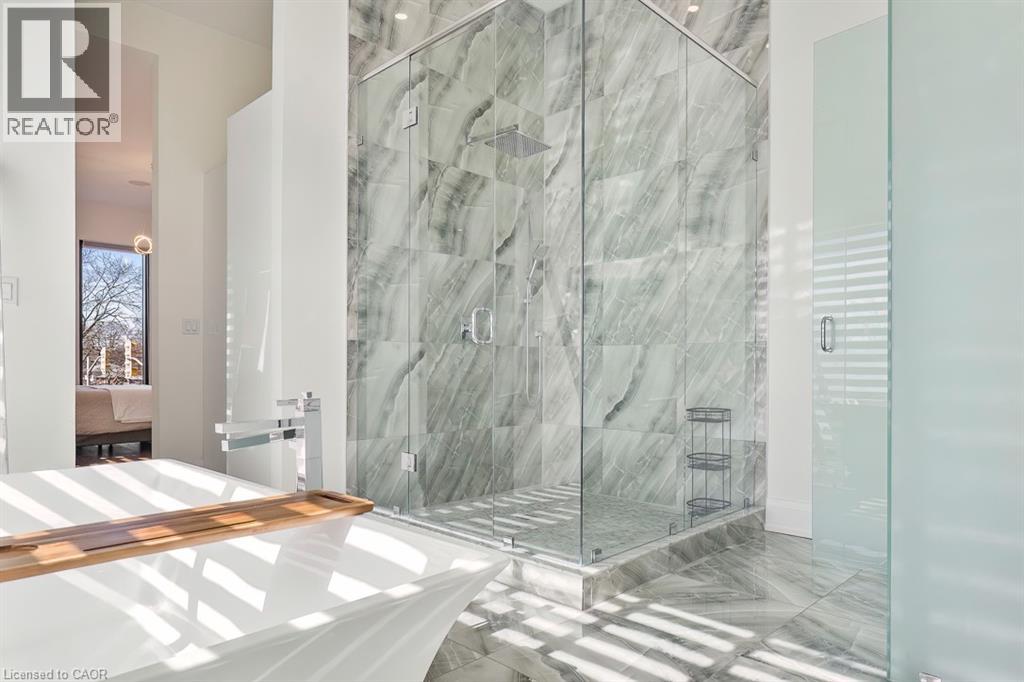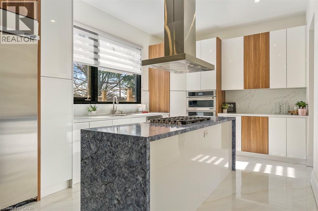 Welcome to 1526 Bridge Road, in the highly sought-after West Oakville community. This exceptional custom-built home, completed in 2021, offers approximately 5,000 sqft of thoughtfully designed living space, showcasing modern design and attention to detail. Step into the impressive foyer with soaring 10 ft ceilings and natural light streaming through architectural floor to ceiling windows. The main level features an open-concept layout with elegant living and dining areas, ideal for everyday living. The sleek kitchen boasts premium built-in appliances, a spacious pantry, and a side entrance for easy outdoor access. The kitchen flows seamlessly into the sophisticated great room, highlighted by a striking blue marble slab feature wall with a fireplace. The main floor also includes a functional mudroom with direct access from the double-car garage and a conveniently located laundry room, offering both style and practicality. Ascend the modern staircase with glass railings to the second level, where 12-ft ceilings in the hallway enhance the sense of space. This level offers 5 bedrooms with 10'9 ft ceilings, 4 with luxurious ensuites. The primary suite is a true retreat with separate his-and-hers closets and a spa-like ensuite featuring 12’-ft ceilings, a freestanding soaker tub, oversized glass shower, double vanity, and elegant porcelain tiles with quartz countertops. The fully finished basement features 9-ft ceilings and abundant natural light. Enclosed with frosted glass doors, it’s ideal as an income unit, nanny suite, or in-law accommodation, with a full kitchen, bathroom, bedroom, spacious rec area, and a separate side entrance with backyard access. Located with easy access to major highways and top schools, including Appleby College, St. Thomas Aquinas, Oakville Christian School, T.A. Blakelock High School, Brookdale School, and Pine Grove School, this home combines functionality, and thoughtful design—truly a home that must be experienced in person. (id:21177)